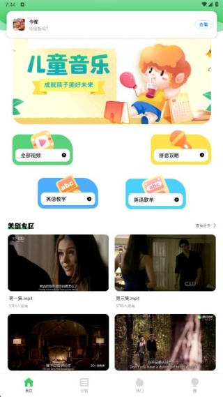陪速课堂是一款英语学习软件。软件内提供丰富的英语学习资源,并且适用性广泛,适合各个年龄段用户使用,设有儿童英语专区,各种趣味教学视频帮助激发孩子学习兴趣,让孩子在潜移默化中接收知识熏陶。软件内还能进行英语配音,帮助练习口语技能!