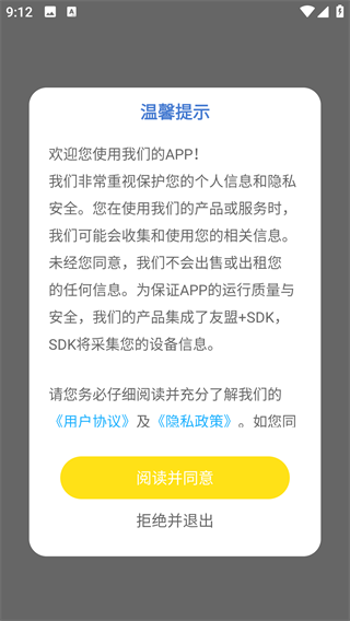 1、下载安装软件并打开,点击阅读并同意,进入软件主界面;