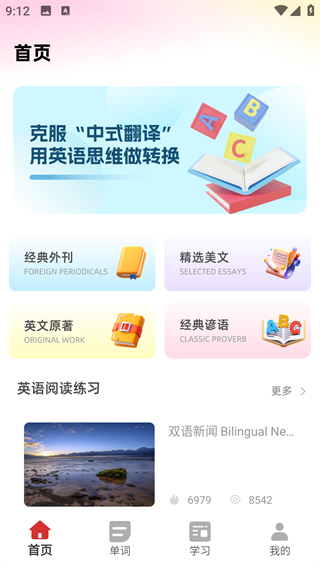 支持用户对英语外刊和经典谚语资源来阅读练习,随心阅读英文原著,实时阅读外刊。