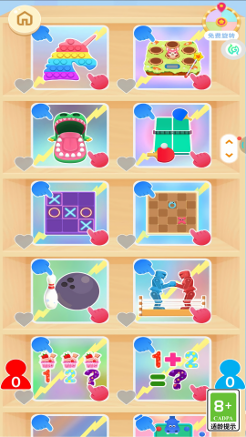 成长解压宝盒是一款休闲闯关类游戏,游戏采用可爱的卡通风格设计,游戏中将多种解压玩法融合到一起,有双人对决、清洁牙齿、打地鼠、双人棋等等休闲解压小游戏,配上欢快轻松的背景音乐,让人无比放松,游戏没有任何规则限制,随时可玩随时可退,感兴趣的玩家快来体验吧!