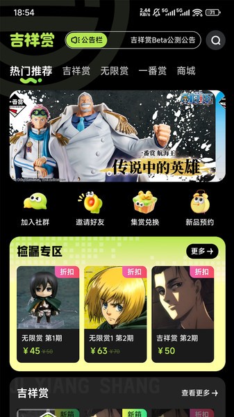 吉祥赏是一款盲盒、IP周边购买软件。软件内提供海量爆款联名手办、盲盒、周边挂件等文创商品。在这里用户可以随意浏览自己喜欢的商品进行下单。软件内商品会不定时上新,并且还设有低价捡漏专区,让用户以优惠的价格买到正版商品,喜欢盲盒的用户快来试试吧!
