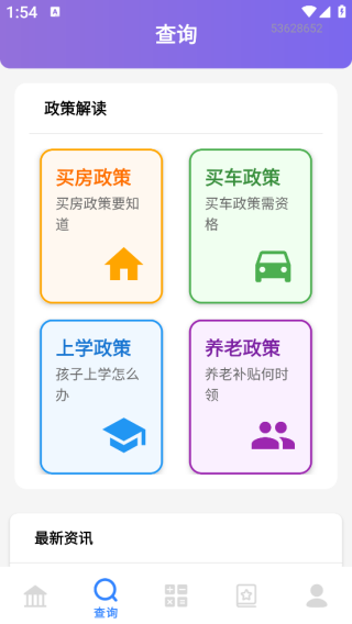 3、进入到【查询】,可以看到详细的政策查询分类,点击即可查询。