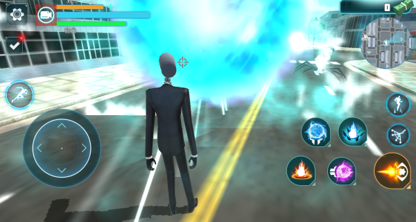 3、滑动虚拟摇杆控制角色移动,合理的使用右侧的技能干掉目标敌人。