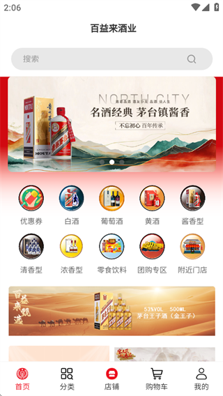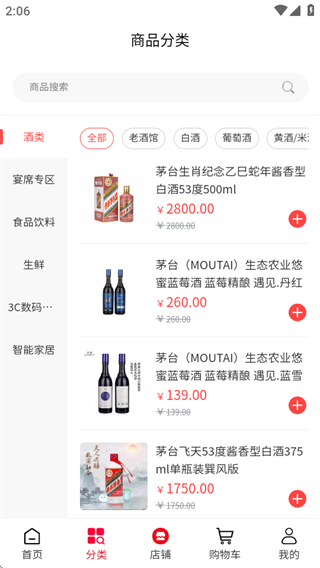 2、包含了丰富的酒水,不同类型都有,点击就可以进入相关分类专区进行选购;
