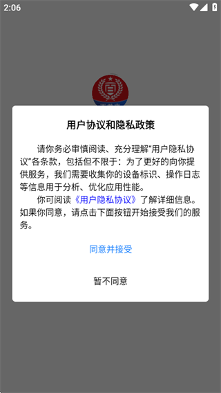 1、打开app,阅读用户协议和隐私政策之后点击同意并接受即可进入;