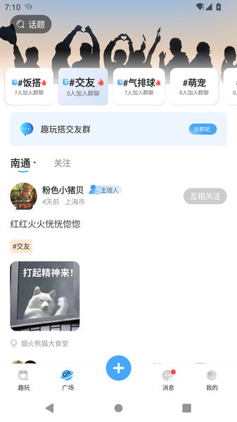 趣玩搭app官方版是一款非常好玩儿线上交友平台,用户可以在里面快速找到志同道合的网友进行现实交流,并且还支持同城匹配交友、高效配对,让网友互动更加便捷,除此之外,软件还能进行语音聊天,让交流随时随地进行,满足用户聊天交友需求!