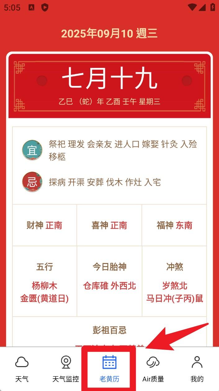 2、老黄历,知天气还知吉日,老黄历可以查看你的运势
