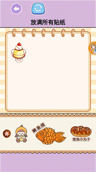 5、进入贴纸相关,先观察笔记上的空白位置与底部贴纸的形状、图案匹配度,精准对应后放置,贴满即可快速过关。