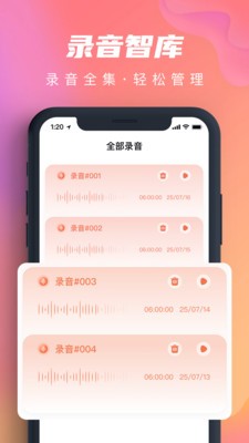 2、内置录音智库与全集管理功能,所有录音文件按清晰标识分类存储,支持快速查找、整理,避免文件混乱。