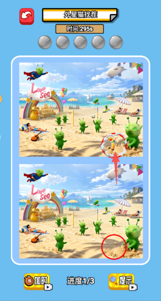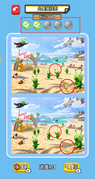 2、上方会显示任务中一共有5处地方需要你找到,确保不遗漏任何一个细节。