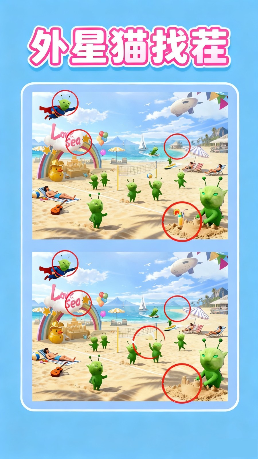 天秀找茬王是一款非常好玩的休闲找不同游戏,游戏会提供各种美丽风景照、人物照、动物照等等,给玩家带来视觉上的震撼,玩家只需要找到两幅图中的不同之处即可,要注意的是关卡有时间限制,越快完成得分越高,如果实在遇到困难,关卡还贴心设有提示道具帮助你通关,趣味性十足,感兴趣的玩家快来体验吧!