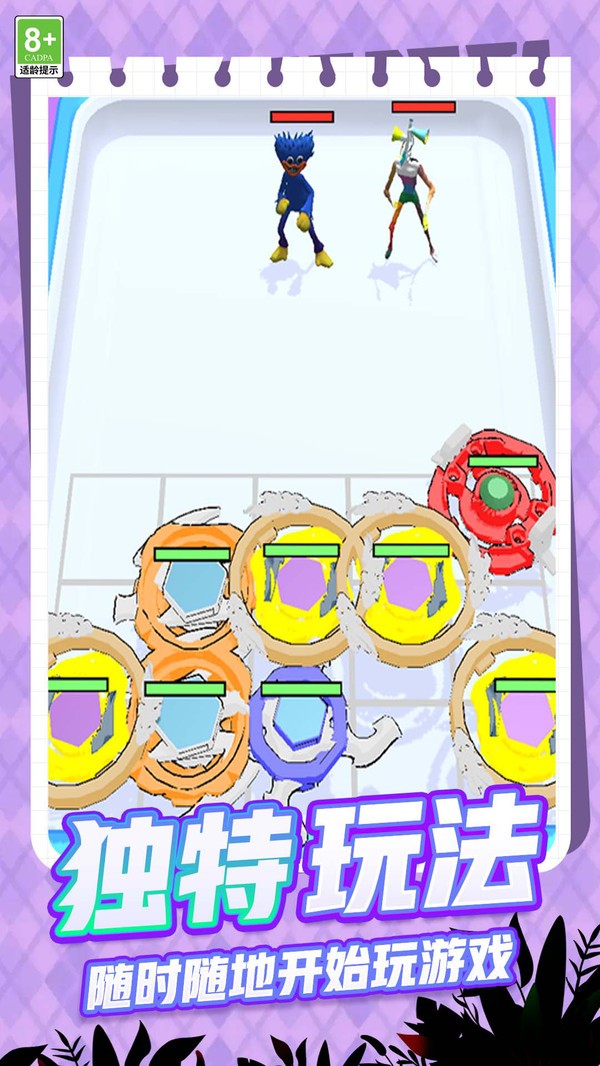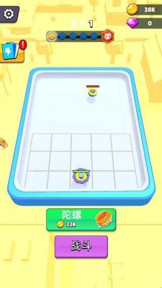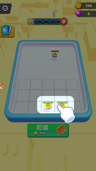 1、使用初始金币购买基础陀螺,熟悉点击屏幕完成合成的操作,尝试合并两个相同基础陀螺,掌握合成流程与节奏。