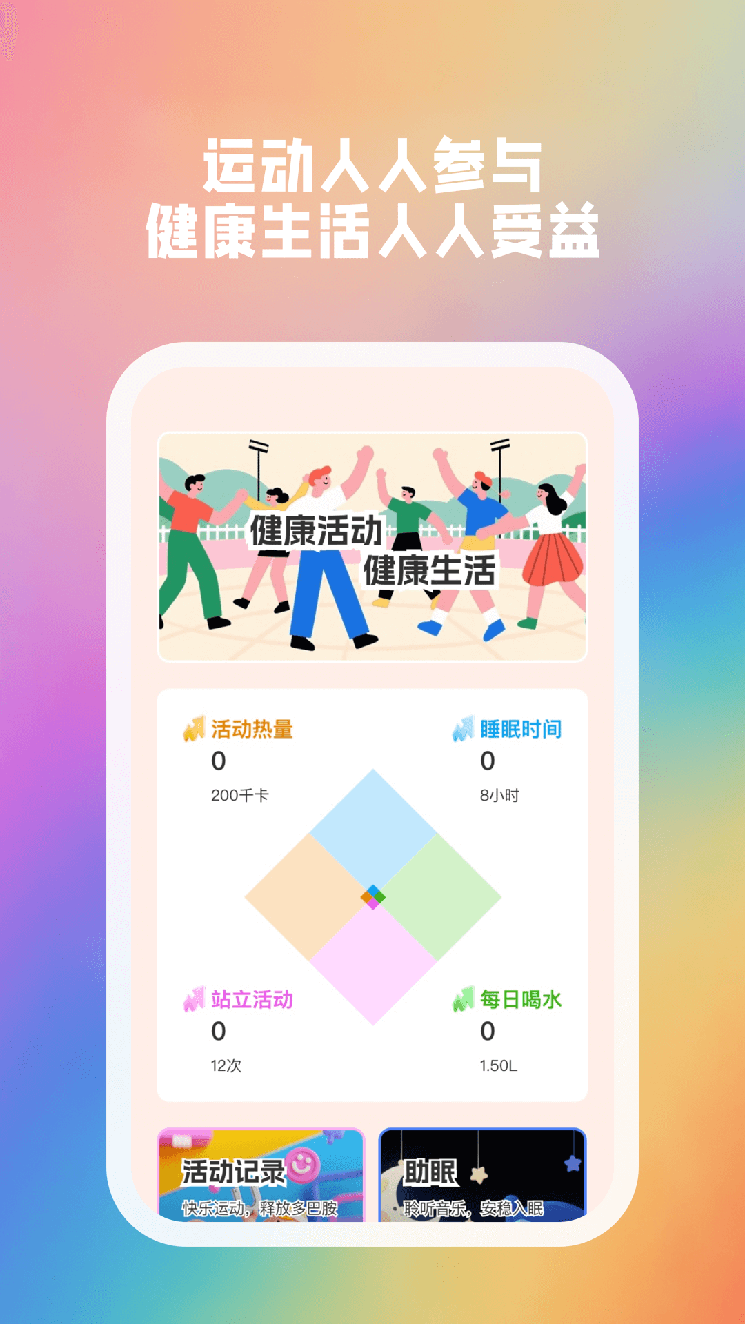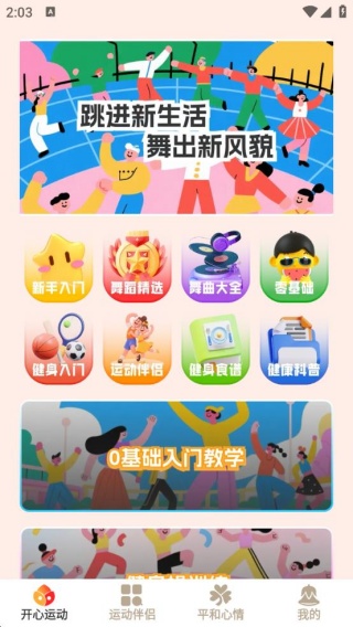 开心不止步是一款运动健康软件。软件内提供海量运动健身动作教学,瘦身舞蹈、广场舞、健身操等等应有尽有,并且教学步骤详细,适合各个人群使用。软件内还能够对用户运动数据进行实时追踪,消耗热量、运动时长等都清晰可见。还有超多健康食谱和健康科普免费提供哦!