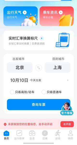 2、在这里,您可以精准查询全国高铁与特价机票,掌握车票起售时间,还能提前了解换乘时长。