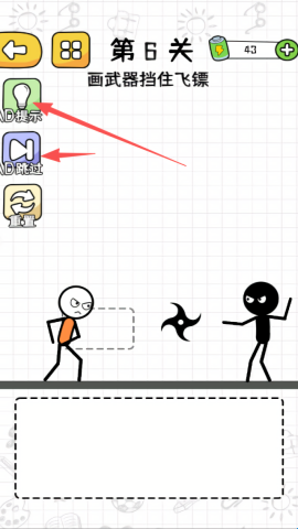 3、若遇到难以完成的图形难题,可点击左侧灯泡图标获取分步提示,或使用跳过机会直接进入下一关。