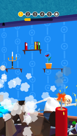 3、灵活控制射击方向,击中道具,获得劈开技能,消灭更多建筑!