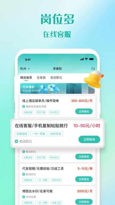 享兼职是一款靠谱副业兼职软件。软件内为用户提供海量兼职岗位,兼职类型齐全多样,并且门槛极低,宅家就可做。用户可在软件内随意浏览选择适合自己的兼职,还支持和兼职招聘者线上沟通。软件内兼职每天都会大量上新,结算也很快速稳定。
