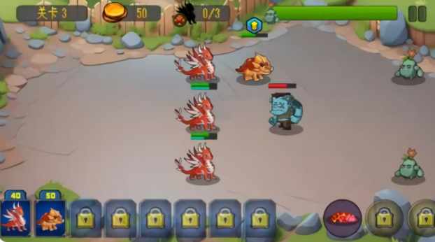2.玩家可以召唤不同类型的龙类防御单位,每种龙都拥有独特的技能和属性。