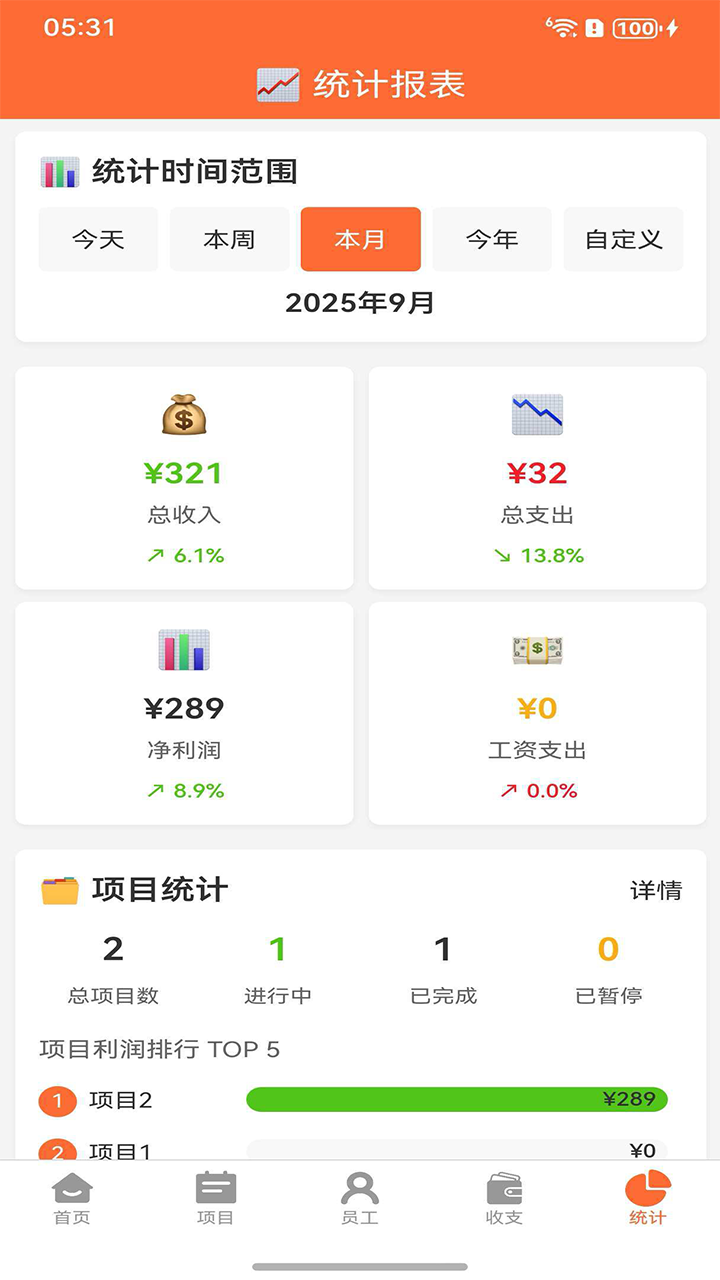 数据统计:自动生成财务报表,直观展示项目盈亏和资金流向