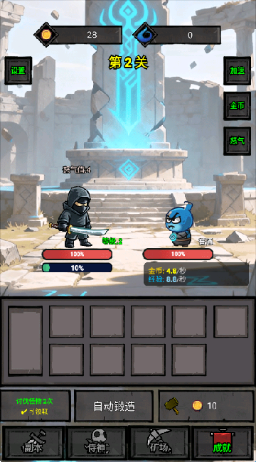 1、游戏采用挂机机制,玩家即使离线也能持续获得资源与经验,角色会自动进行战斗并推进关卡进度。