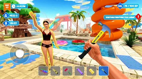 水上乐园经理模拟器是一款休闲模拟经营类游戏,游戏以水上乐园为主题展开,你作为这里的经理,你需要对娱乐设施的放置和乐园的安全着想,在保障安全的情况下实现盈利最大化,游戏都是从零开始,真正体验到现实般的模拟玩法,感兴趣的玩家快来体验吧!