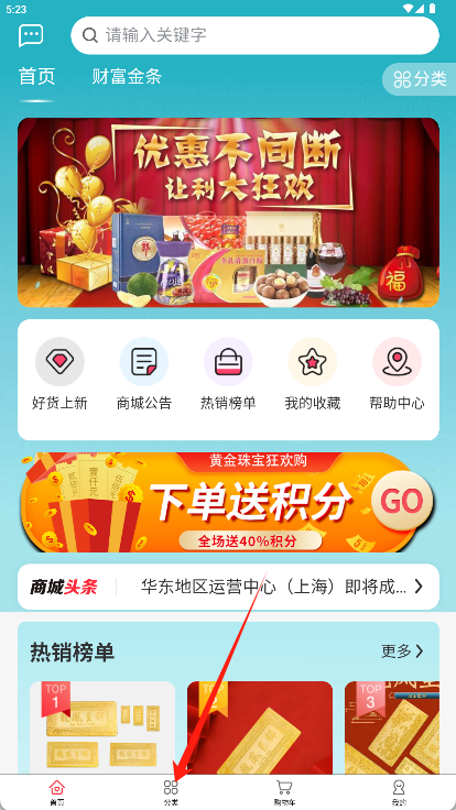 1、在首页点击底部导航栏“分类”按钮,进入商品分类页面选择目标品类。