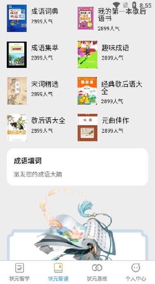 2、状元智读:状元智读功能聚焦于提高阅读能力,提供精选的读物推荐和阅读技巧。用户可以通过丰富的文学、科学和人文书籍的阅读,拓宽知识面,提升理解与分析能力,让阅读变得更高效。