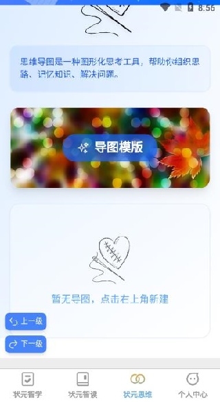 3、状元思维:状元思维模块是思维导图类的工具,帮助用户梳理思路、组织信息和进行问题分析。通过创建和分享思维导图,用户可以更清晰地理解学习内容,提升思维的逻辑性与创造性。