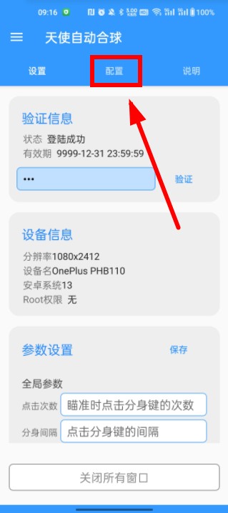 2、卡密验证成功后,我们点击配置,来到功能参数板块。