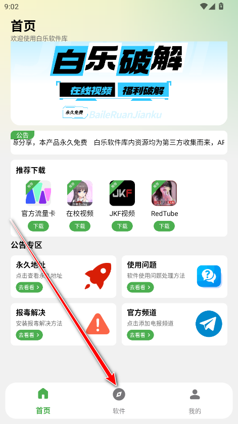 1.请在本站下载安装并打开最新版的白乐软件库,点击下方的软件。