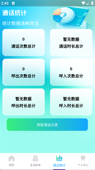 4、点击页面下方的‘通话统计’,即可看到通话次数总计、呼出次数总计等数据。