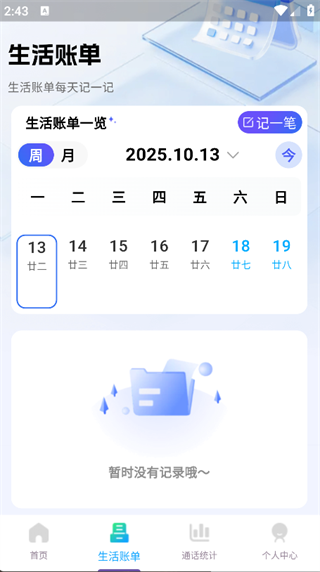 3、点击页面下方的‘生活账单’,即可开始记录收支情况;