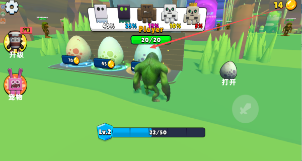 4、可以用金币解锁宠物,它们会陪伴你战斗,提供额外的帮助。