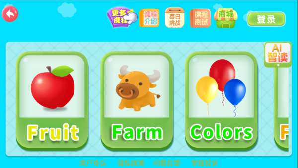2、渐进认知 字母游戏、字母列表、字母歌的循序渐进的学习方式,学字母不再枯燥。