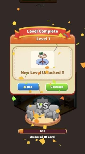 4、将房间的家具全部摆放好后,第一关任务就可以完成,获得相应的奖励。