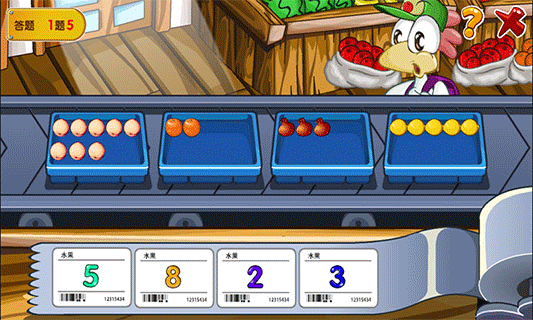6、数一数店铺中各种商品并答题,在商店中数一数各种不同的硕果以及商品并填写数字答案;