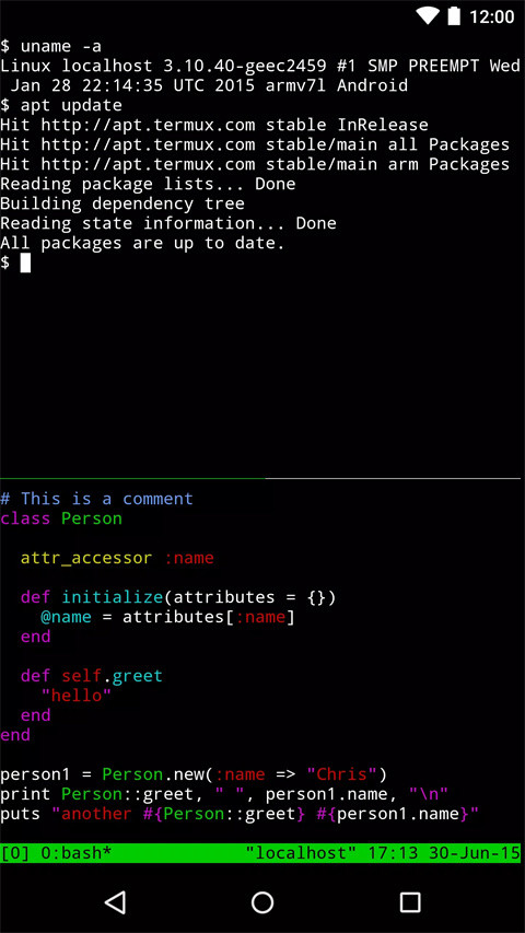 Termux 中提供的软件包与 Mac 和 Linux 上的软件包相同最新版本的 Perl、Python、Ruby 和 Node.js 都是可用的。