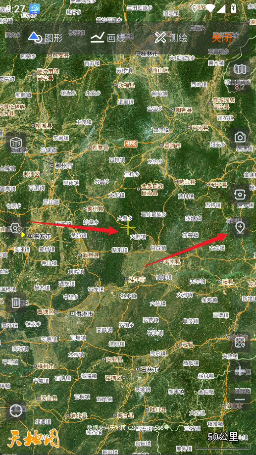 1、进入软件后降十字心对准需要查看经纬度的地点,然后点击右侧的标记