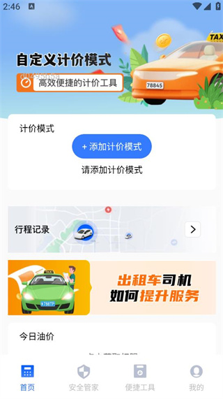1、支持自定义计价模式,能根据不同时段、里程等灵活设置。还有行程记录、今日油价查询功能。