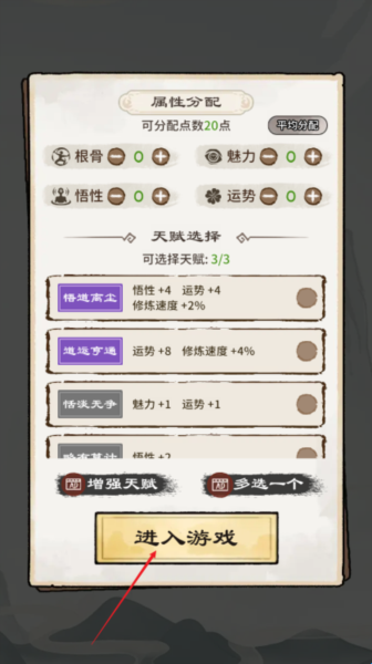 1、下载安装修仙世界模拟器,选择你的角色开启修仙