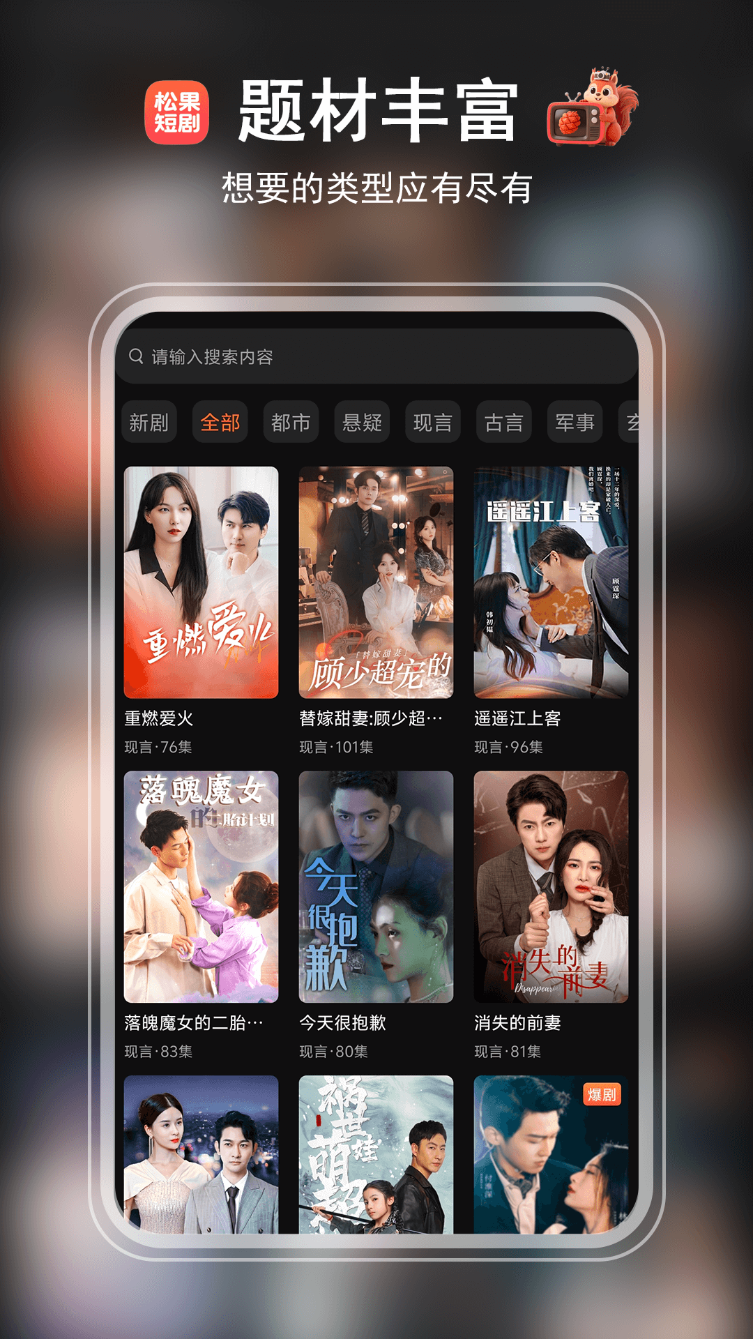 1、松果短剧app下载每天更新大量高质量的短剧,涵盖了悬疑、都市情感、古代穿越、青春甜宠等多个主题,满足了所有人的审美需求。