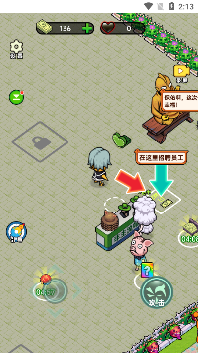 1,可控制主角鸡攻击员工,会有特定对话(可查看讲话表)。攻击员工会让它提高工作效率;假如偷懒中,可使其回到工作状态。攻击一定次数后员工会辞职走人。