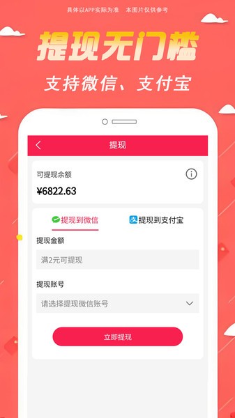 3、提现0手续费:支持快捷提现到微信/支付宝,快速到账,提现全程0手续费!