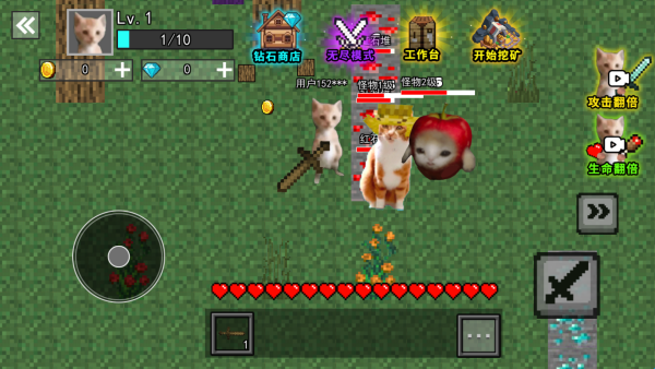 3、包含无尽模式、特色玩法与钻石商店资源交互模块,拓展内容边界,满足玩家长线探索与个性化发展需求。