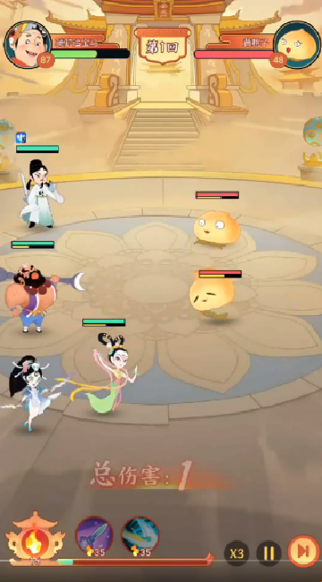 1、精美卡通:游戏采用Q版卡通风格进行人物设计,角色形象诙谐生动。场景绘制细腻精致,营造了一个充满新鲜感的西游世界。