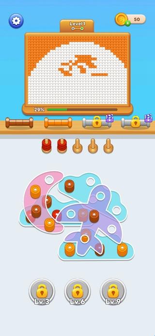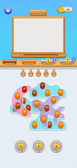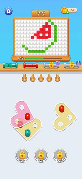 3.每个关卡中都有不同的螺丝钉,你要按照正确顺序取出大头针,解开缠绕的线头。