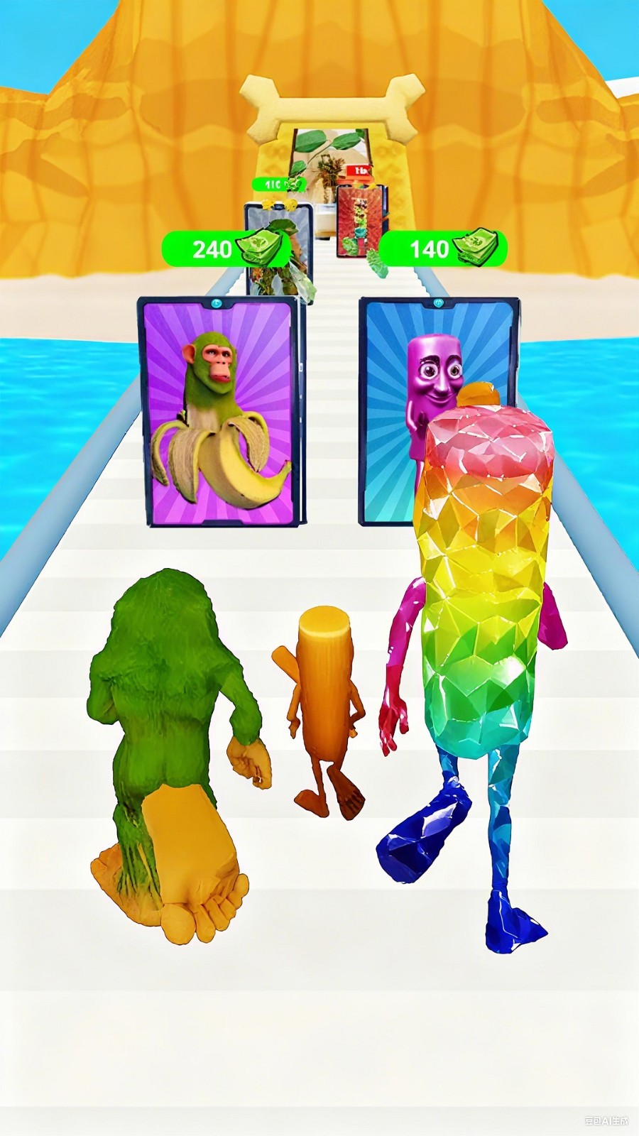 1、在跑酷过程中玩家可以使用金币来召唤山海经怪物,每种怪物都有不同的战斗力,带领怪物一起到达终点。