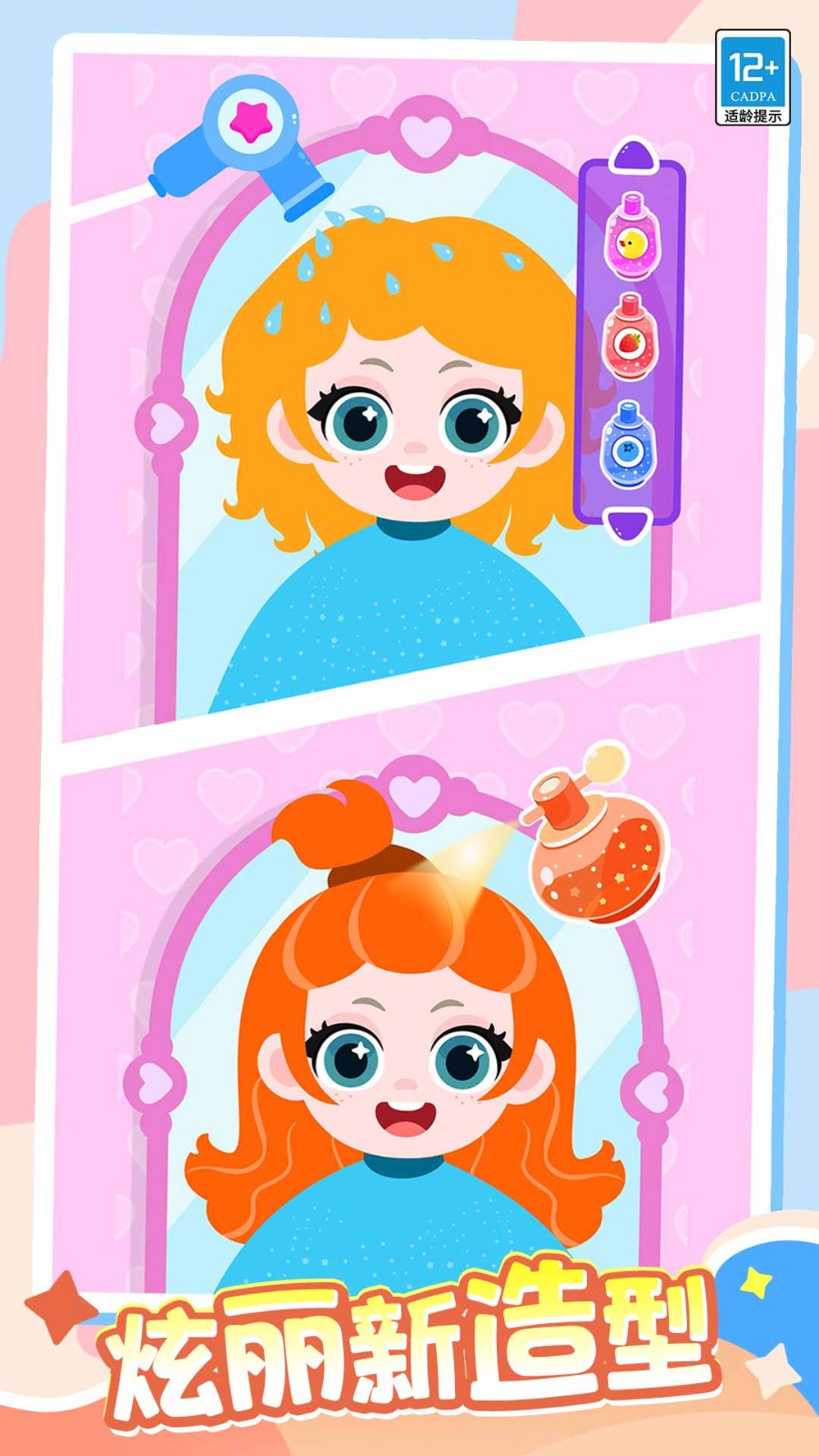 4、先来为小公主清洗头发,按照步骤来进行美发吧!