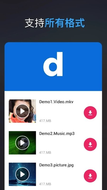 支持所有下载格式,MP3,M4A,MP4,M4V,MOV,AVI,WMV,DOC,XLS,PDF,TXT,等等