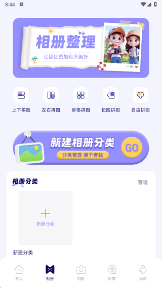 2、在相册页面中支持上下拼图、左右拼图、宫格拼图、长图拼图以及自由拼图;